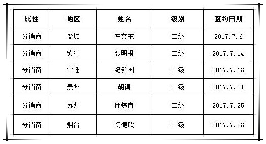 【國(guó)泰訊】7月31日,自集團(tuán)營(yíng)銷中心最新數(shù)據(jù)顯示,進(jìn)入七月以來,公司渠道開發(fā)又出新成績(jī),新增簽約合作伙伴6家。他們分別來自鹽城、鎮(zhèn)江、宿遷、泰州、蘇州、煙臺(tái)等,至此國(guó)泰集團(tuán)渠道的開拓工作又登上了一個(gè)新的臺(tái)階!
